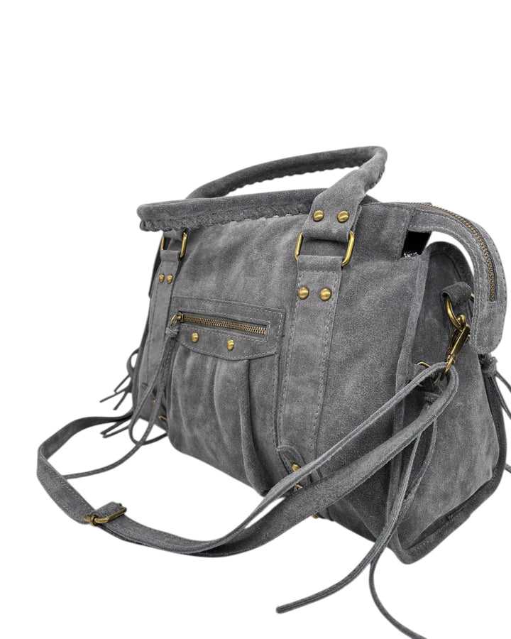 Realizzata interamente in Italia con pelle Scamosciata di alta qualità, Silvia Grande celebra l'artigianalità italiana con dettagli unici, come le frange decorative che le donano un carattere inconfondibile. Questa borsa è perfetta per trasportare libri, computer portatili e tutti gli accessori indispensabili per l’università, il lavoro o un weekend fuori porta.