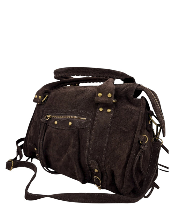 Realizzata interamente in Italia con pelle Scamosciata  di alta qualità, Silvia Grande celebra l'artigianalità italiana con dettagli unici, come le frange decorative che le donano un carattere inconfondibile. Questa borsa è perfetta per trasportare libri, computer portatili e tutti gli accessori indispensabili per l’università, il lavoro o un weekend fuori porta.