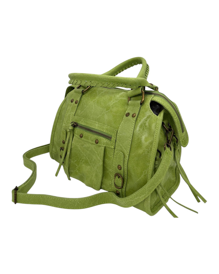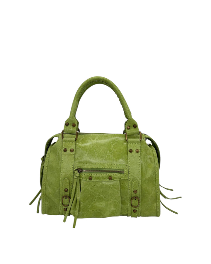 Le sue frange decorative aggiungono movimento e personalità al design, mentre i dettagli in ottone conferiscono un tocco di classe. La tracolla regolabile e rimovibile, insieme alle comode maniglie, permette di adattare la borsa a ogni occasione, sia per un look casual che più sofisticato.