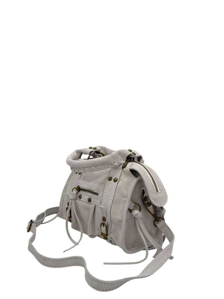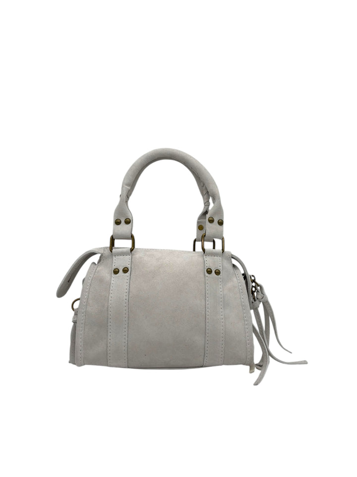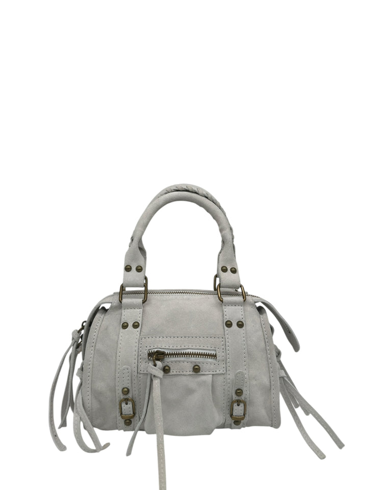 La nostra iconica borsa Silvia è la più richiesta di sempre! Più di una semplice borsa, è un accessorio che racconta storia e artigianalità. Realizzata interamente in Italia in vera pelle, si distingue per il suo stile senza tempo, arricchita dalle frange decorative che aggiungono movimento e carattere al design. È perfetta per chi cerca un equilibrio tra stile e funzionalità quotidiana. Grazie alle maniglie e alla tracolla regolabile, puoi portarla comodamente in mano o a tracolla, adattandola alle tue esigenze. Disponibile in una vasta gamma di colori, la Silvia Mini si adatta a ogni occasione, portando con sé una versatilità che accompagna ogni tuo look. L'interno rivestito in tessuto e la tasca interna ed esterna offrono un'organizzazione ottimale per i tuoi effetti personali, mentre i bottoni e la cerniera in ottone completano il design con un dettaglio sofisticato. La pelle scamosciata di alta qualità, lavorata con maestria, conferisce un tocco di classe e durata. La Silvia Mini non è solo una borsa: è l'accessorio che completa il tuo look con eleganza, portando con sé la raffinatezza di un prodotto autenticamente Made in Italy.