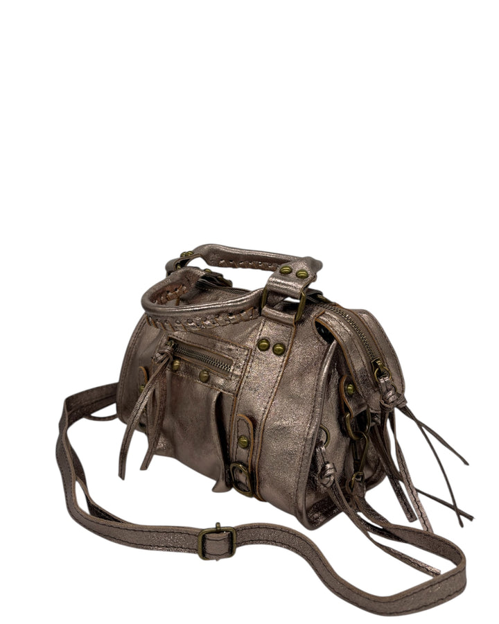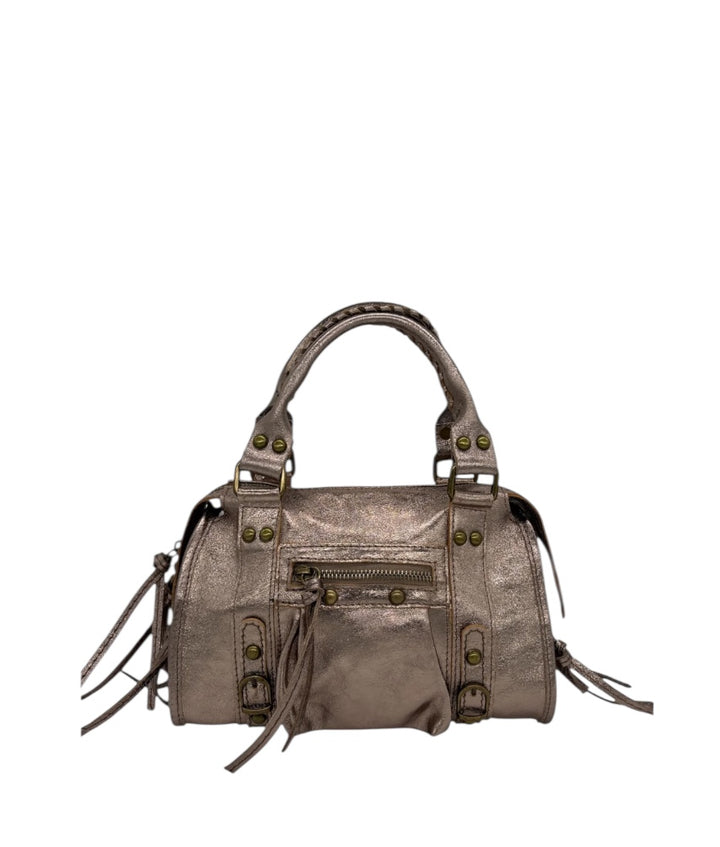 La nostra iconica borsa Silvia è la più richiesta di sempre! Più di una semplice borsa, è un accessorio che racconta storia e artigianalità. Realizzata interamente in Italia in vera pelle, si distingue per il suo stile senza tempo, arricchita dalle frange decorative che aggiungono movimento e carattere al design. È perfetta per chi cerca un equilibrio tra stile e funzionalità quotidiana. Grazie alle maniglie e alla tracolla regolabile, puoi portarla comodamente in mano o a tracolla, adattandola alle tue esigenze. Disponibile in una vasta gamma di colori, la Silvia Mini large si adatta a ogni occasione, portando con sé una versatilità che accompagna ogni tuo look. L'interno rivestito in tessuto e la tasca interna ed esterna offrono un'organizzazione ottimale per i tuoi effetti personali, mentre i bottoni e la cerniera in ottone completano il design con un dettaglio sofisticato. La pelle di alta qualità, lavorata con maestria, conferisce un tocco di classe e durata. La Silvia Mini large non è solo una borsa: è l'accessorio che completa il tuo look con eleganza, portando con sé la raffinatezza di un prodotto autenticamente Made in Italy.