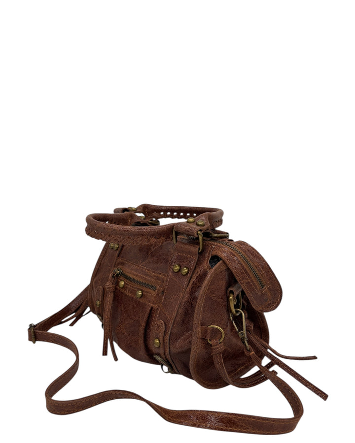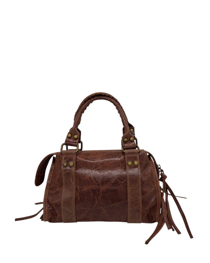 La nostra iconica borsa Silvia è la più richiesta di sempre! Più di una semplice borsa, è un accessorio che racconta storia e artigianalità. Realizzata interamente in Italia in vera pelle, si distingue per il suo stile senza tempo, arricchita dalle frange decorative che aggiungono movimento e carattere al design. È perfetta per chi cerca un equilibrio tra stile e funzionalità quotidiana. Grazie alle maniglie e alla tracolla regolabile, puoi portarla comodamente in mano o a tracolla, adattandola alle tue esigenze. Disponibile in una vasta gamma di colori, la Silvia Mini large si adatta a ogni occasione, portando con sé una versatilità che accompagna ogni tuo look. L'interno rivestito in tessuto e la tasca interna ed esterna offrono un'organizzazione ottimale per i tuoi effetti personali, mentre i bottoni e la cerniera in ottone completano il design con un dettaglio sofisticato. La pelle di alta qualità, lavorata con maestria, conferisce un tocco di classe e durata. La Silvia Mini large non è solo una borsa: è l'accessorio che completa il tuo look con eleganza, portando con sé la raffinatezza di un prodotto autenticamente Made in Italy.