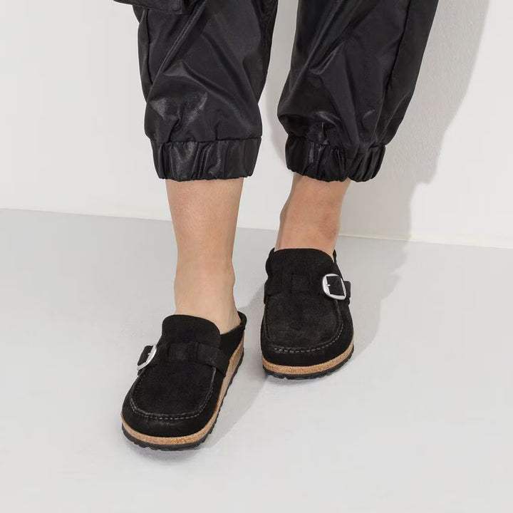 BIRKENSTOCK Buckley è un sabot semiaperto in stile mocassino, un vero originale BIRKENSTOCK immediatamente riconoscibile dall’ampia suola in sughero. L’appariscente cucitura è una vera chicca. Questa variante si presenta con i nostri amati Big Buckle. La tomaia contribuisce a ricreare un design naturale grazie alla pelle scamosciata particolarmente morbida che aderisce al piede come una seconda pelle.