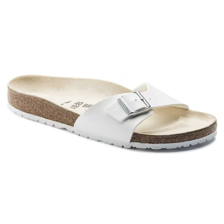 La pianella BIRKENSTOCK Madrid è il primissimo modello della grande famiglia BIRKENSTOCK e, a ragione, è considerata un vero classico. Lanciata mezzo secolo fa sul mercato come “pianella da ginnastica", questo modello a cinturino unico dalle linee essenziali è diventato ora una vera icona di moda. La tomaia è in materiale sintetico Birko-Flor® dermoaffine e resistente.